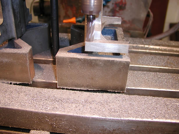 After that both end face were machined to width, then a slot was machined in each face to hold the top retainer plate. This plate hooks under and into the face. I would think this takes the load off the bolts in real life.