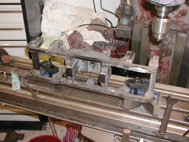 Once the bar had been machined to shape and also length the frame was set up on its side to drill the fixing holes for the blocks