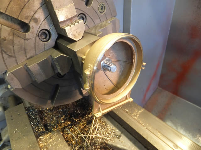 Next job was to make a fixture to hold the light in the lathe while I machined the front face .