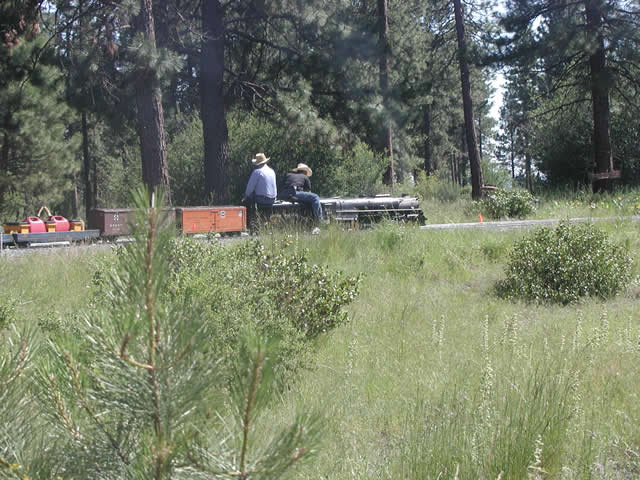 Rob Gearns about to take me out on a steady run to the end of track.On the right is Becky Mendelsohn, all part of the 23 strong Assiniboine Valley Railway team that turned up at TM with with 3 steamers and a box cab to add to the fun.